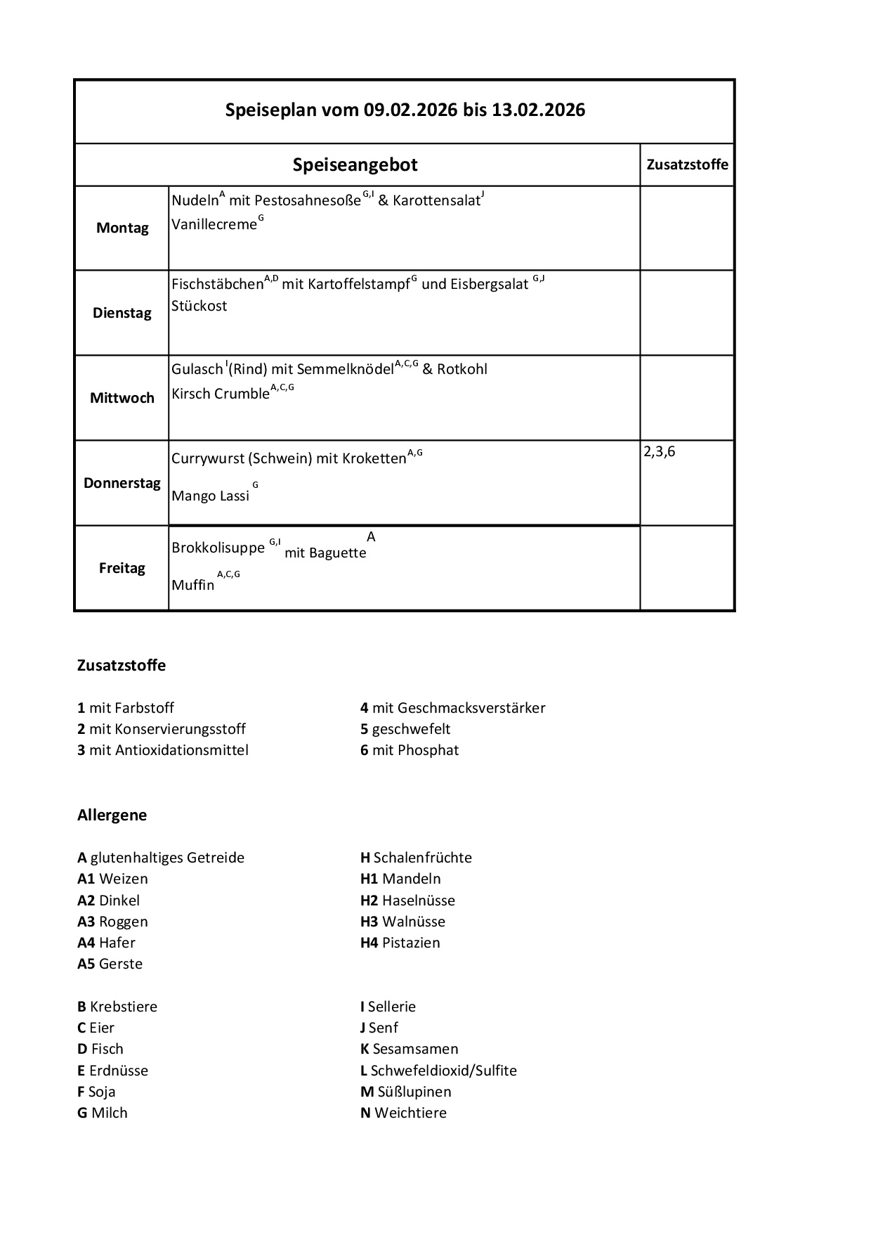 Speiseplan vom 09.02.2026 bis zum 13.02.2026