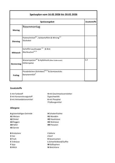 Speiseplan vom 16.02.2026 bis zum 20.02.2026