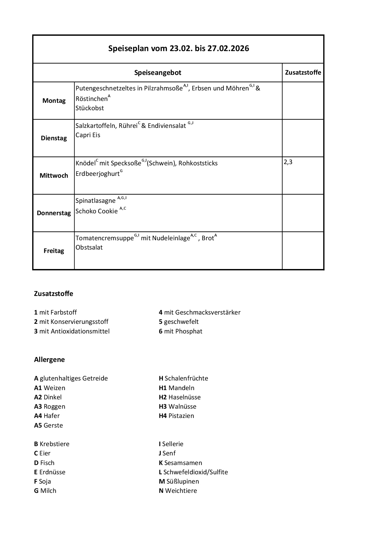 Speiseplan vom 23.02.2026 bis zum 27.02.2026