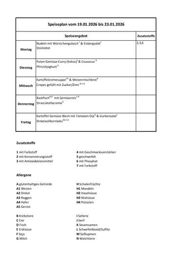 Speiseplan vom 19.01.2026 bis zum 23.01.2026