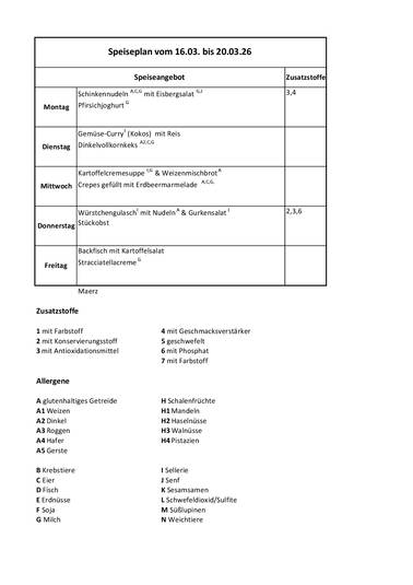 Speiseplan vom 16.03.2026 bis zum 20.03.2026