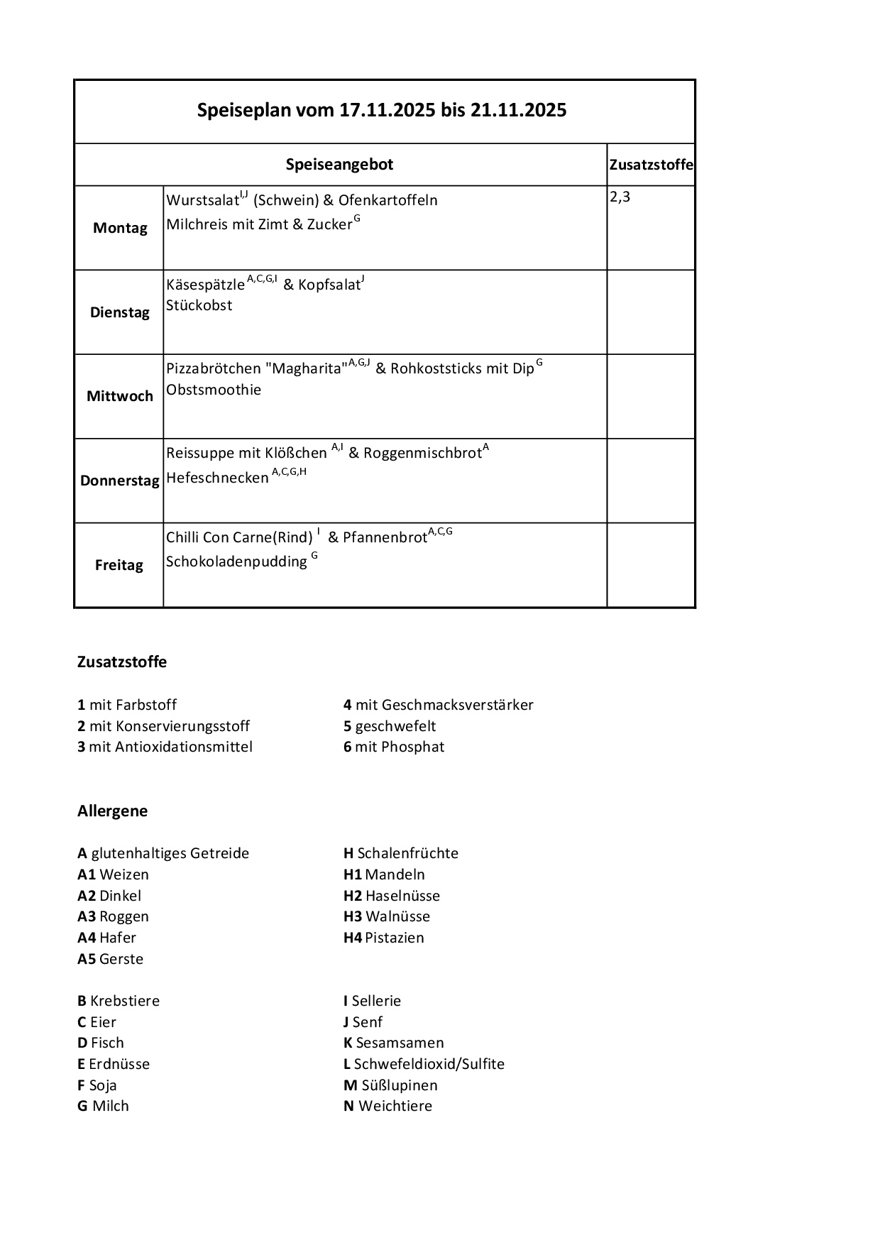 Speiseplan vom 17.11.2025 bis zum 21.11.2025