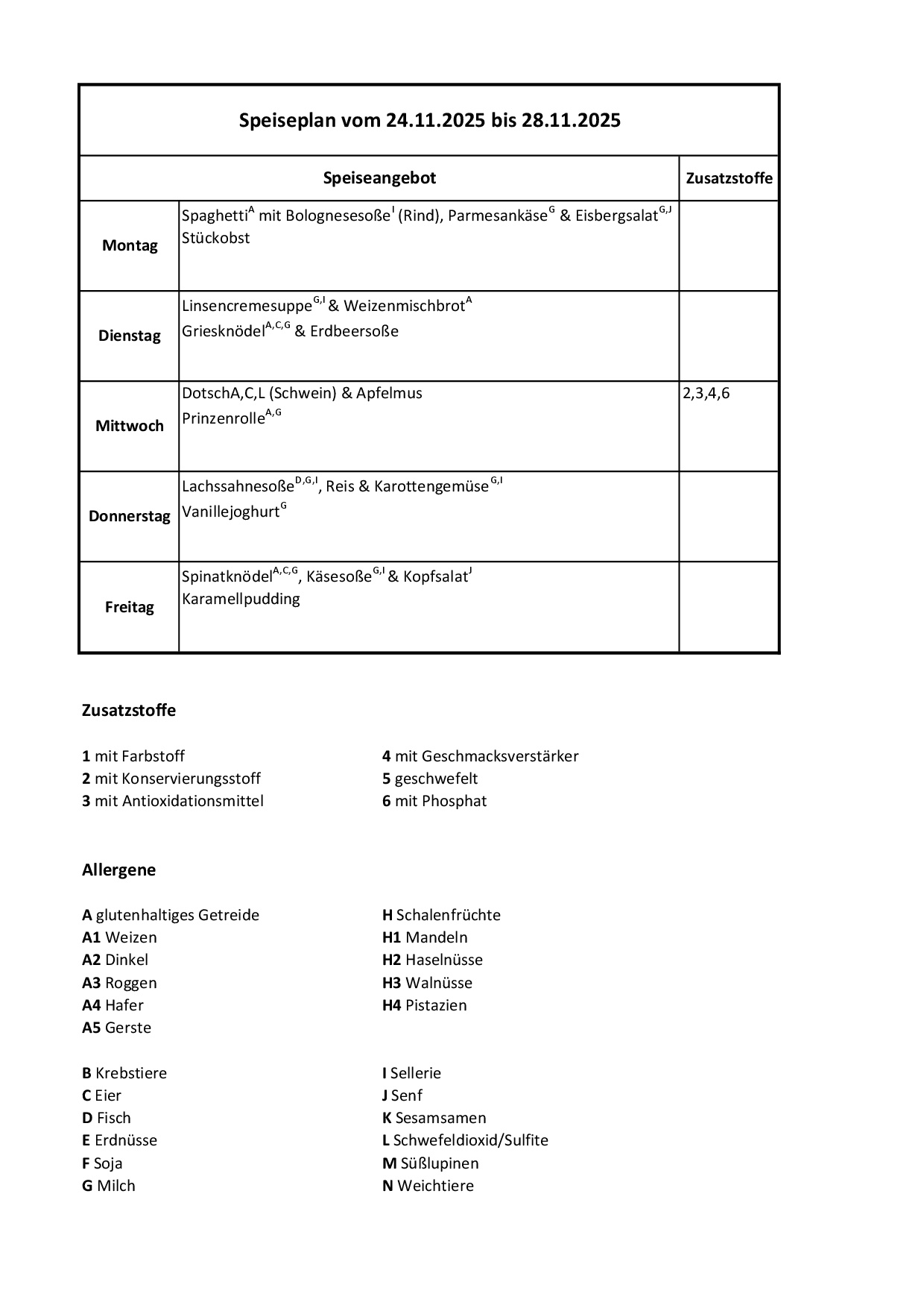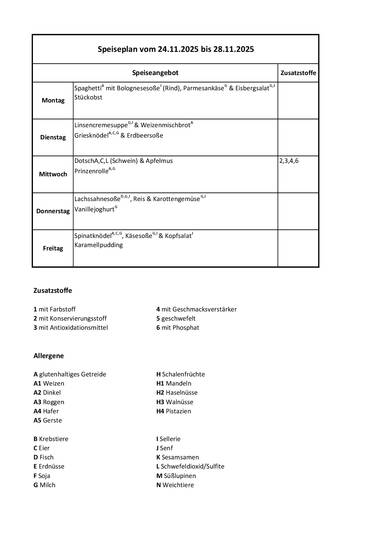 Speiseplan vom 24.11.2025 bis zum 28.11.2025