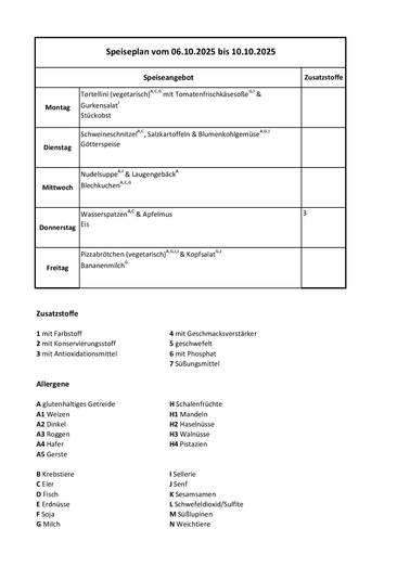 Speiseplan vom 06.10.2025 bis zum 10.10.2025